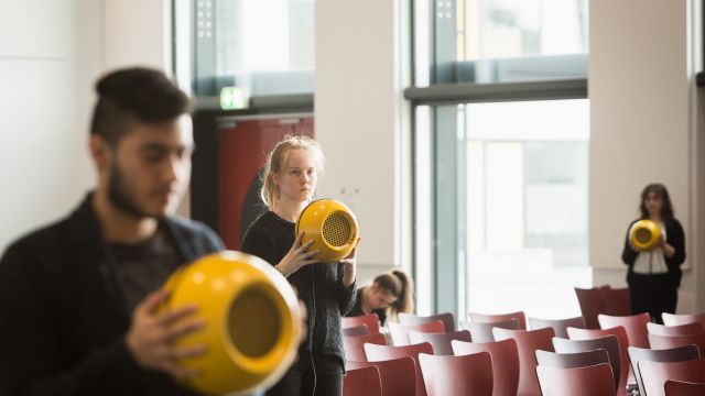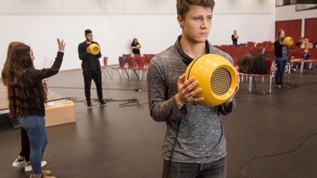Eigens mit dem Mikrofon aufgenommen Klänge aus Schule und Alltag, die durch geschickte Manipulation, wie z.B. schnelleres oder langsameres Abspielen an einen Filmprojektor erinnern, wurden ebenso erprobt, wie der Einsatz von Soundeffekten, die Raum und Zeit aufzulösen scheinen. Ausgestattet mit einem Ensemble aus beweglichen Lautsprechern sollte das Verhalten von Klang, Raum und Zeit so künstlerisch erfahrbar gemacht werden.