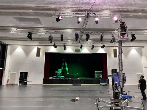 Wir freuen uns sehr, dass wir nun noch mehr Möglichkeiten haben in der Aula professionell zu leuchten. Wir danken allen, die uns beim Umbau unterstützt haben!