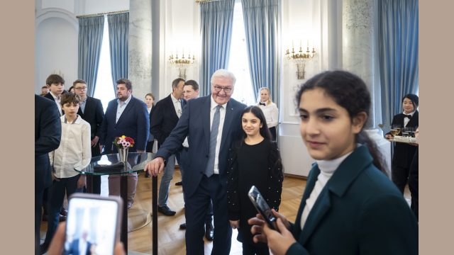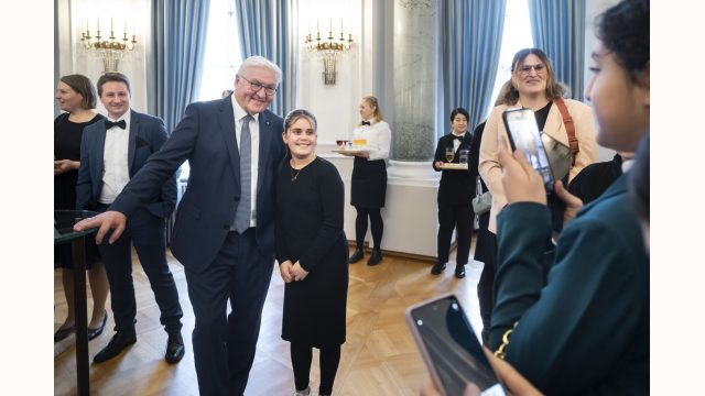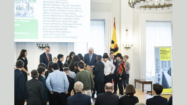 Unseren Song konnten wir bereits auf dem Mühlenberger Markt, bei der Sanierungskommission Mühlenberg in der Weißen Rose und in unserer Aula spielen. Wir sind als Klasse überwältigt von der positiven Resonanz unserer Arbeit und freuen uns, dass wir nun den 1. Platz beim Geschichtswettbewerb belegen konnten. Wir hatten zwei sehr schöne Tage in Berlin mit den anderen Preisträgerinnen und der Körber Stiftung und es war sehr aufregend im Schloss Bellevue den Preis vom Bundespräsidenten Frank Walter Steinmeier überreicht zu bekommen.