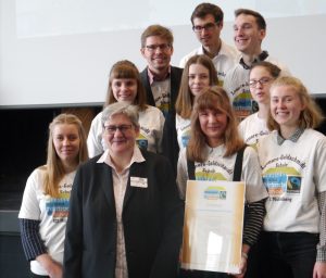 Sabine Tegtmeyer-Dette, Erste Stadträtin und Wirtschafts- und Umweltdezernentin der Landeshauptstadt Hannover, überreichte das Zertifikat an Jugendliche der Leonore-Goldschmidt-Schule. Sie lobte das Engagement der Schule für nachhaltiges Handeln: „Wenn wir die nachhaltigen Entwicklungsziele mit Leben erfüllen wollen, sind wir alle gefragt, einen Beitrag dazu zu leisten. Es freut mich, dass die Leonore-Goldschmidt-Schule, die traditionell eine sehr engagierte Schule ist, sich auch besonders intensiv für Nachhaltigkeit und globale Gerechtigkeit einsetzt.“