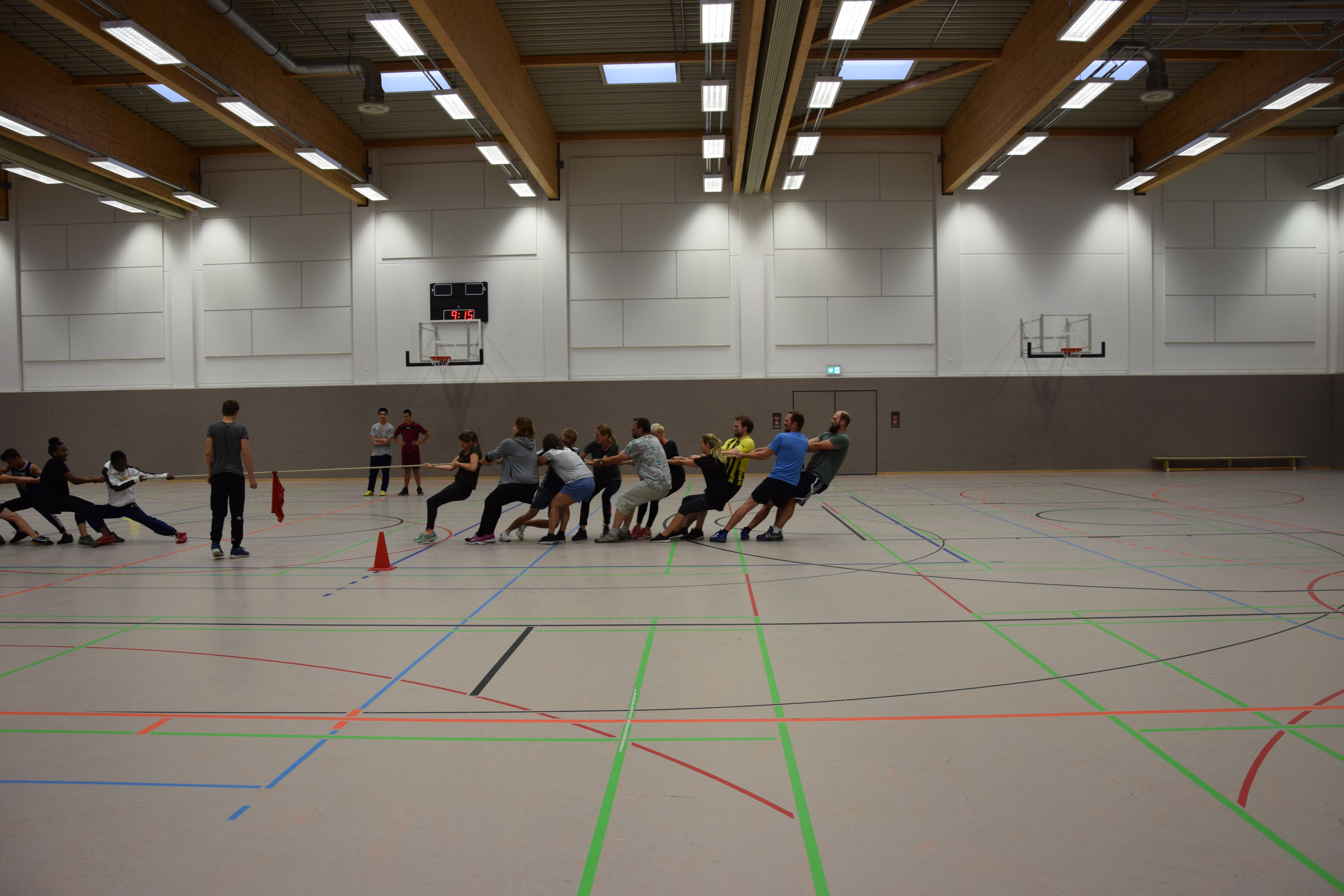 In der Projektwoche stand Sport im Vordergrund des neunten Jahrgangs. Vor klasseninternen Schwimm- und Paddelausflügen startete die Woche mit einem Völkerballtunier und endete mit einem Tauziehturnier für den gesamten Jahrgang. Unter der Leitung von Martina Stein zeigten die Klassen auf dem Feld und am Tau ihr Bestes. Wir gratulieren der 9e zum Sieg im Völkerball und selbst gegen die Mannschaft der Lehrerinnen und Lehrer konnte die 9d sich beim Tauziehen durchsetzen.