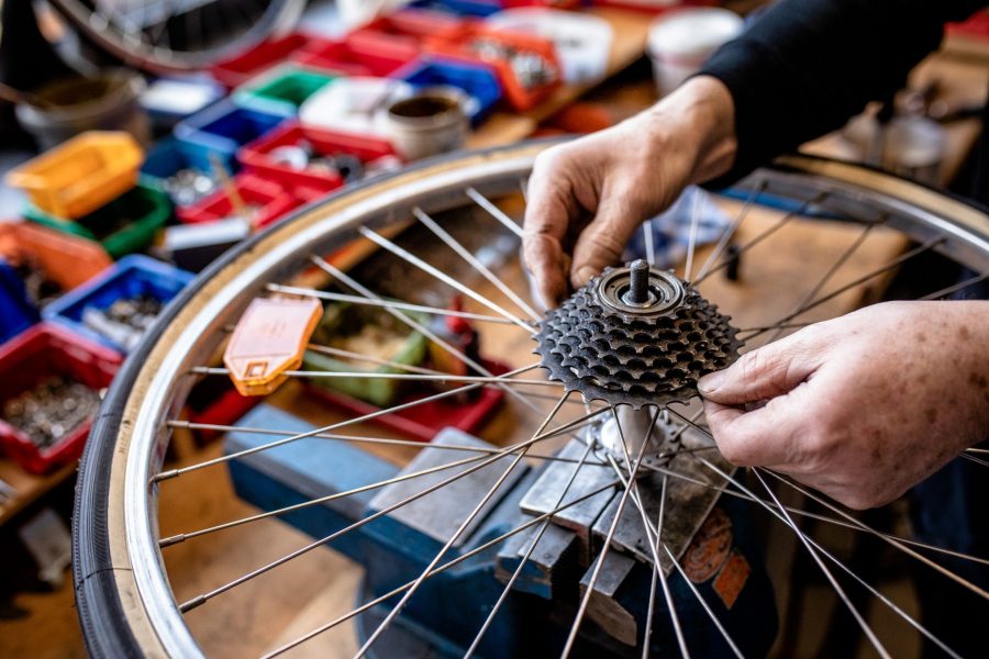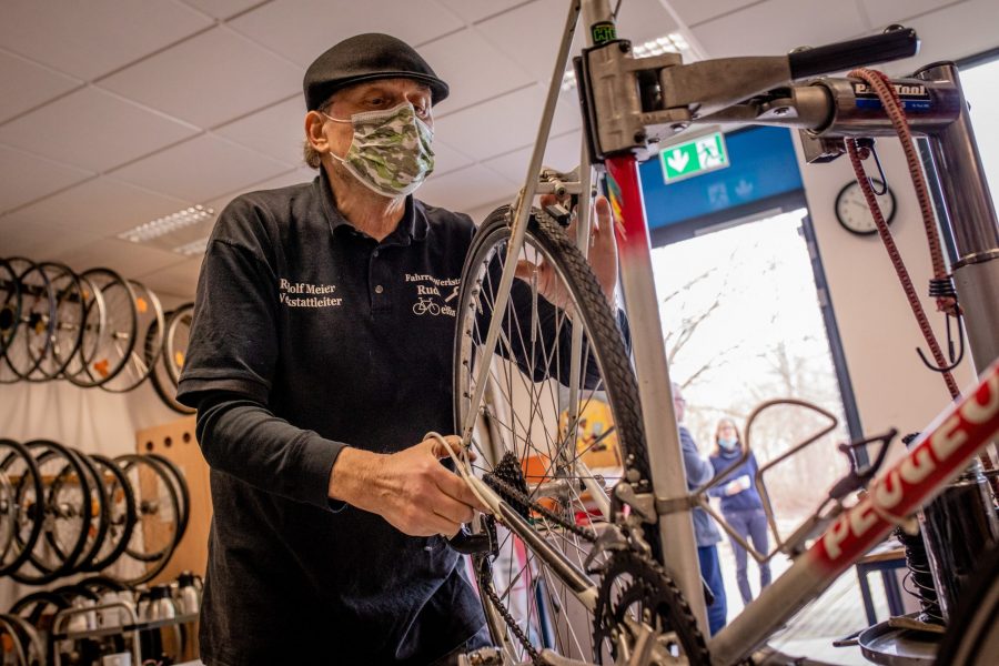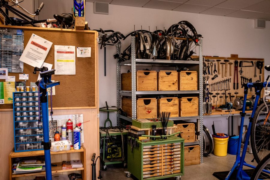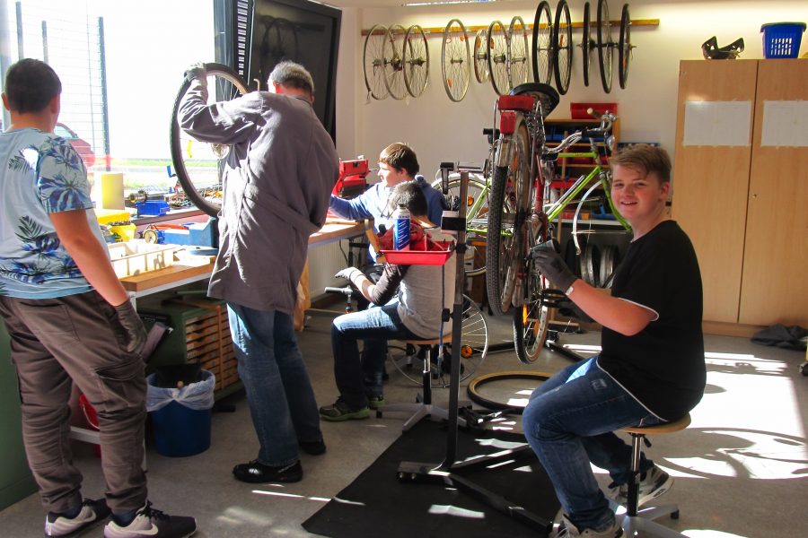 Liegen keine dringenden Aufträge vor, schrauben Schülerinnen und Schüler der AG, die Lust dazu haben, an ihren eigenen Rädern.