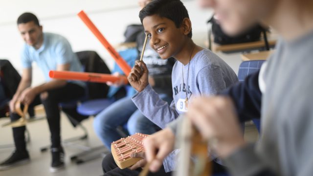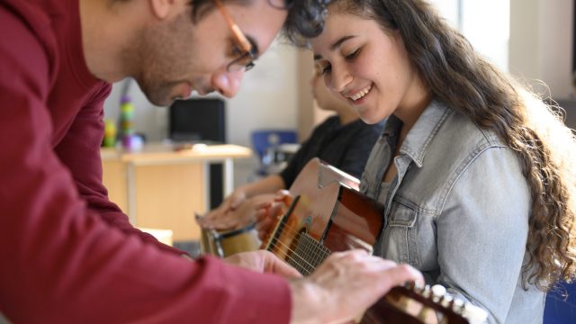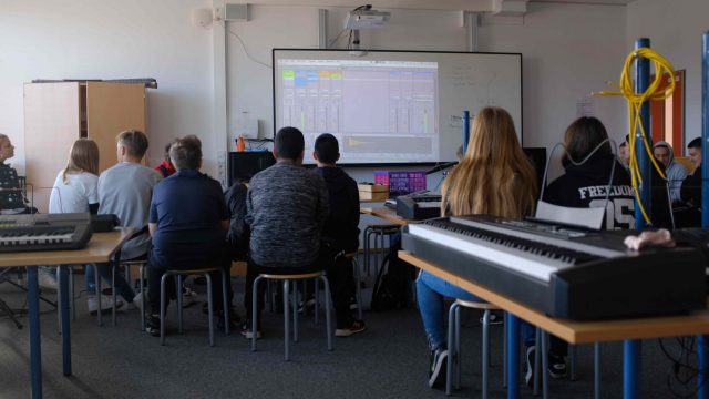 Im Musikfachbereich an der Leonore-Goldschmidt-Schule unterrichten insgesamt zehn Kolleg*innen. Ein zentraler Aspekt des Unterrichts ist die Musikpraxis. Die Schüler*innen sollen möglichst viel Erfahrungen im Singen und Instrumentalspiel sammeln, die mit der Musiktheorie verknüpft werden.