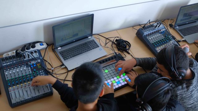 Ein Schwerpunkt des Musikbereichs der Leonore-Goldschmidt-Schule ist der Einsatz von digitalen Medien. Die Schüler*innen erlernen in den Jahrgängen 5 bis 7 Kompositiontechniken am Sequenzer mit dem iPad. In den höheren Jahrgängen arbeiten die Schüler*innen mit dem Controller Push und der Software Live von Ableton.