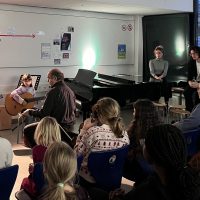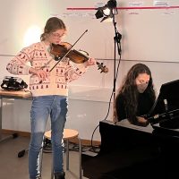 Am Diens­tag den 12.12.2023 war das letzte Vor­spiel für das Jahr 2023. Der Musik­raum 1 war voll mit Gäs­ten. Viele Schüler*innen haben ihren Fort­schritt vor­ge­stellt und unglaub­li­che Per­for­man­zen gezau­bert. Nina aus dem 11 Jahr­gang war als Freun­din da und berich­tet: „Es ist sehr ein­drucks­voll gewe­sen, was dabei raus gekom­men ist. Eini­gen Schüler*innen läuft man in der Schule über den Weg und dann sieht man plötz­lich was die ein­fach Kras­ses können.“
