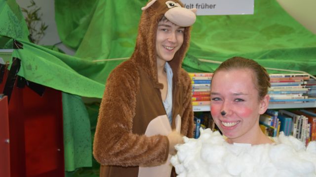 Geschichten aus der eigenen Kindheit wurden von Schülerinnen und Schülern des 13. Jahrgangs szenisch gestaltet und im Rahmen des nationalen Vorlesetags in der Bibliothek präsentiert. Zugehört und zugeschaut haben dabei die zweiten Klassen der Grundschule Henning-von-Tresckow und eine Gruppe des Kindergartens Lummerland aus Ronnenberg. Mit aufwendigen Bühnenbildern wurden Welten gestaltet, in die sich die jungen Zuschauer fallen lassen und den Geschichten die volle Aufmerksamkeit widmen konnten. In diesem Jahr wurden an den Lesestationen „Das Dschungelbuch“, „Die Geschichte vom Lämmchen“, „Hänsel und Gretel“, „Rotkäppchen“, „Jim Knopf“ und „Schneewittchen“ inszeniert.