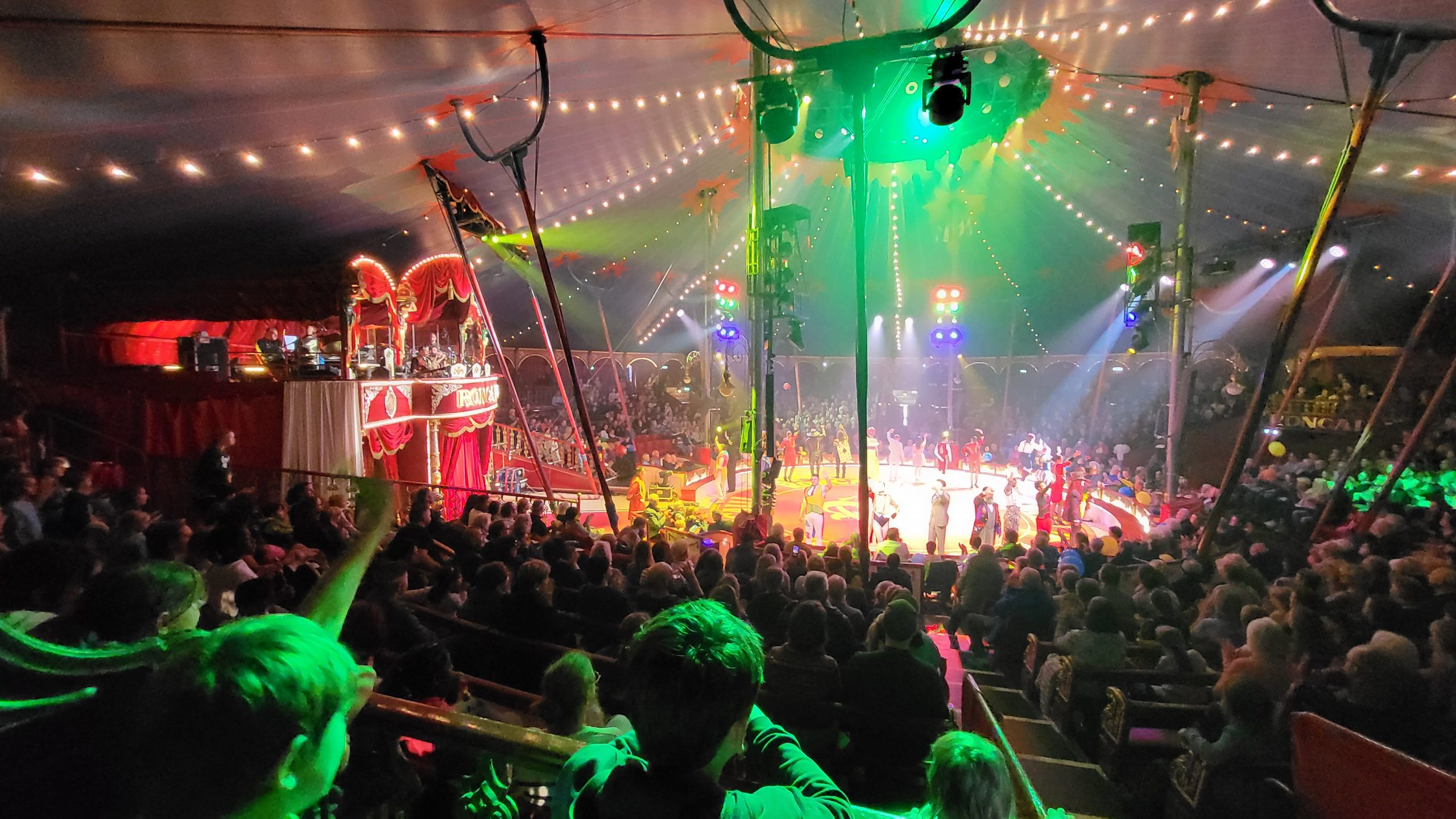 Im großen Zelt des Zirkus Roncalli konnten am 08.10.2025 die Kinder der Ganztags-Zirkus-AG einen Zauber erleben. Durch unseren Kooperationspartner blu:boks und die beiden Trainer Lina und Lukas gab es Freikarten für die Nachmittagsvorstellung. Mit etwas Popcorn, Zuckerwatte und Waffeln ausgestattet, konnten 15 Kinder eine beeindruckende Aufführung erleben.